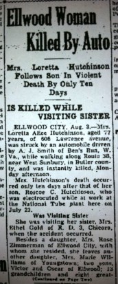 A week after Roscoe’s unexpected death, Loretta Hutchinson stepped around a large commercial grass mower and was hit by a car driving 45 mph. She died instantly. It’s believed that Loretta was crying about the recent death of her son, that she never saw the car coming. Loretta’s sister, Ethel Gold, who witnessed the tragic event, developed many health problems as a result from the shock.