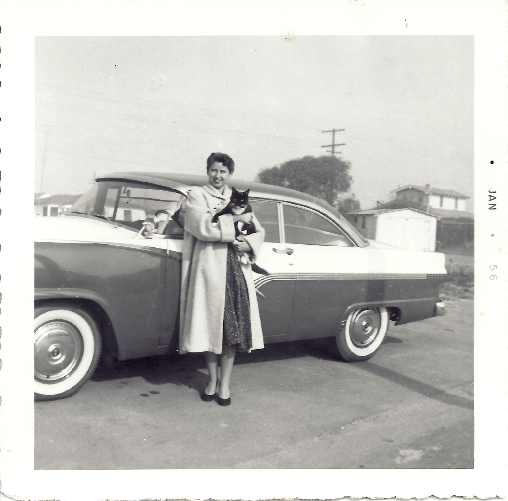 Stylish woman, new car, and a huge cat! I love it. I must be related to her.
