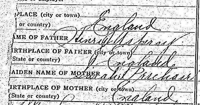 The father is listed as Henry Aspery, not John as Thomas’ obituary said.  Both records are secondary though… maybe the father’s name was “John Henry?”  Another possible issue is Phoebe’s birth year of 1861, making her 22 years younger than brother Thomas.  Either way, the mother’s name is extra helpful: Sarah Perchase.